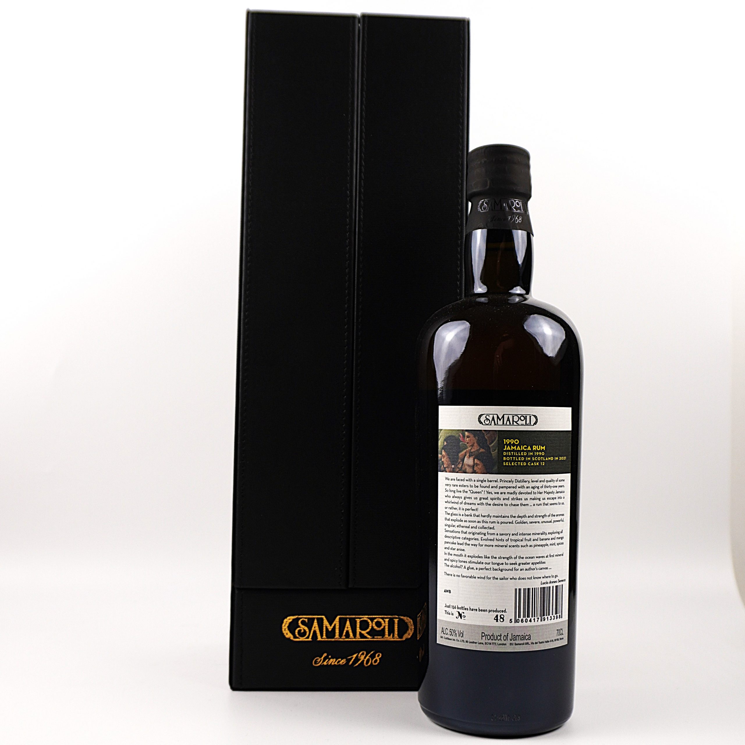 Dieser Jamaika Rum stammt aus dem Jahr 1990 und wurde von einer nicht näher benannten jamaikanischen Destillerie produziert. Der Rum wurde 2021 von Coiltean Spirits abgefüllt, im Auftrag des italienischen Unternehmens Samaroli, das für seine hochwertigen unabhängigen Abfüllungen bekannt ist. Samaroli ist ein angesehener Abfüller, besonders in der Welt des Scotch Whiskys, und hat auch in der Rumproduktion unter der Leitung von Antonio Bleve Anerkennung gefunden. Dieser Rum wurde aus Melasse hergestellt, hat eine Abfüllstärke von 50 % und wurde in einer limitierten Auflage von 156 Flaschen abgefüllt.