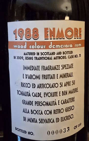 Wie ein leiser Hauch tropischer Nächte erhebt sich der Enmore 1988 45% Samaroli / Wood Colour Demerara Rum aus den nebelverhangenen Geschichten der karibischen Rumkunst. Geboren in der legendären Enmore Destillerie im Herzen Guyanas, offenbart dieser Rum seine edle Herkunft mit jedem Tropfen – destilliert im Jahre 1988 und mit Geduld und Hingabe bis zum Jahr 2009 zur Vollendung gereift.