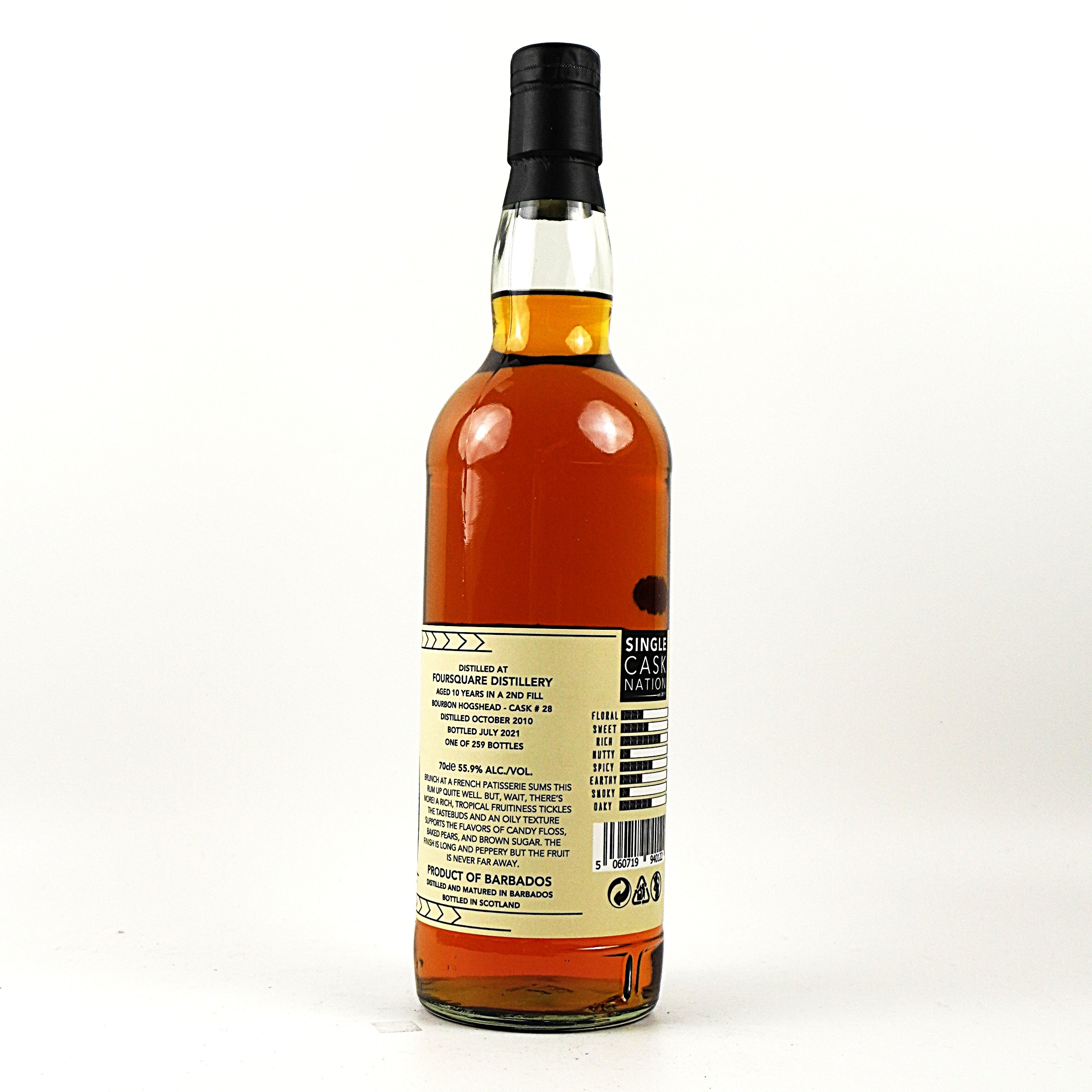 Dieser Rum wurde im Oktober 2010 destilliert und in einem einzelnen Ex-Bourbon Hogshead Fass 28 für 10 Jahre gereift. Er wurde im Juli 2021 von Single Cask Nation abgefüllt. Es handelt sich um eine limitierte Auflage von nur 259 Flaschen.