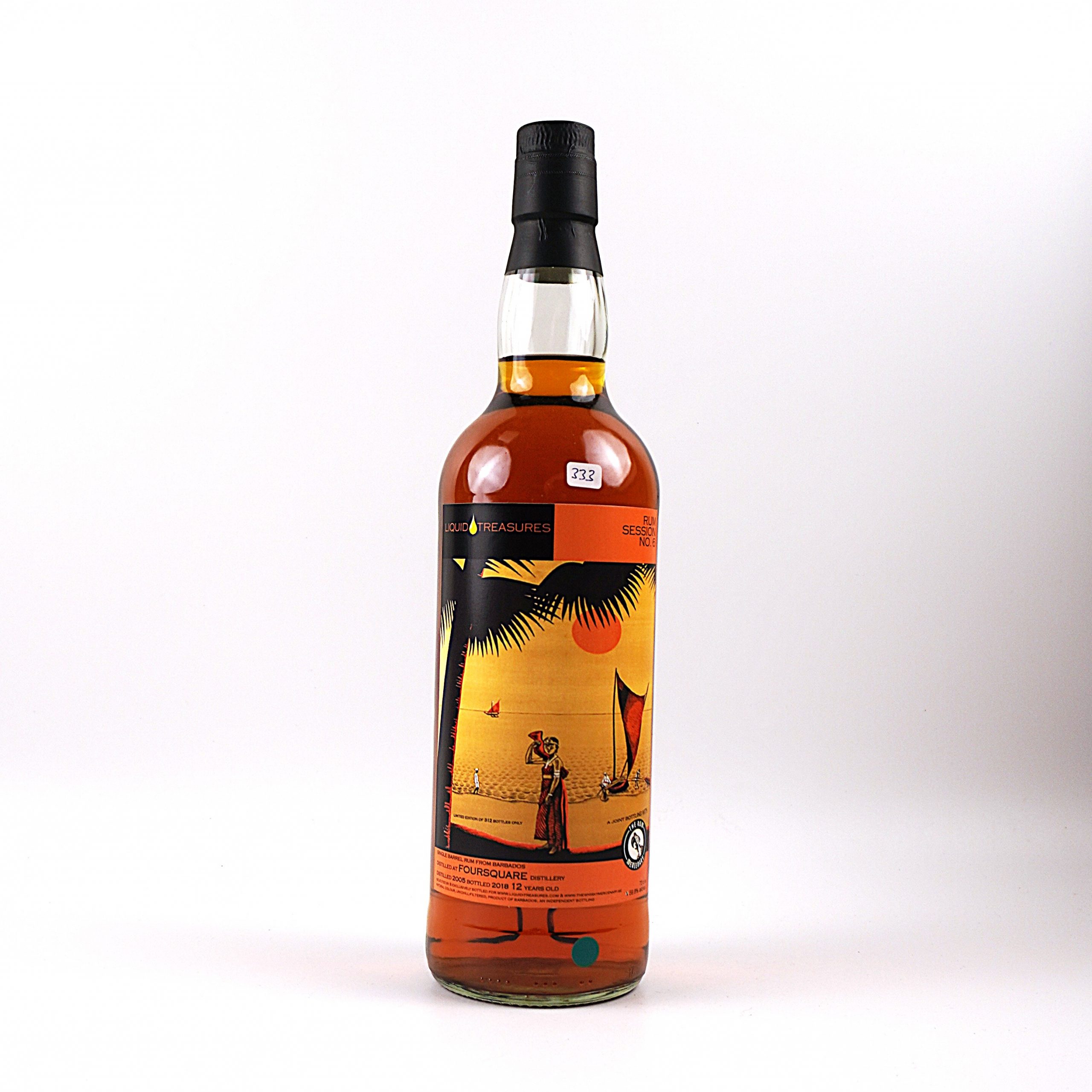 Der Foursquare 2005/2018 Rum Session No. 6 ist eine limitierte Abfüllung des unabhängigen Abfüllers Liquid Treasures. Dieser Rum wurde in der renommierten Foursquare Distillery auf Barbados im Jahr 2005 destilliert und im Jahr 2018 nach 12 Jahren Reifung in einem einzigen Fass abgefüllt. Mit einem Alkoholgehalt von 59,8 % vol. und einer Fassstärke von 70 cl wurden lediglich 312 Flaschen produziert.