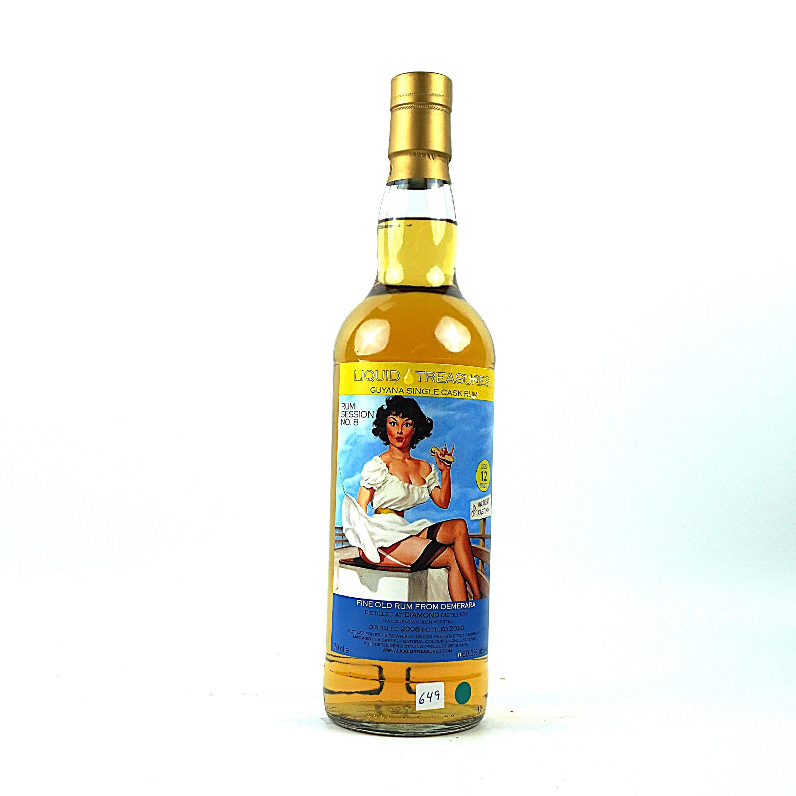 Ein Single Cask Demerara Rum aus der Port Mourant Still der Diamond Distillery in Guyana. Destilliert im Jahr 2008 und mit einer Fassstärke von 12 Jahren von Liquid Treasures abgefüllt.