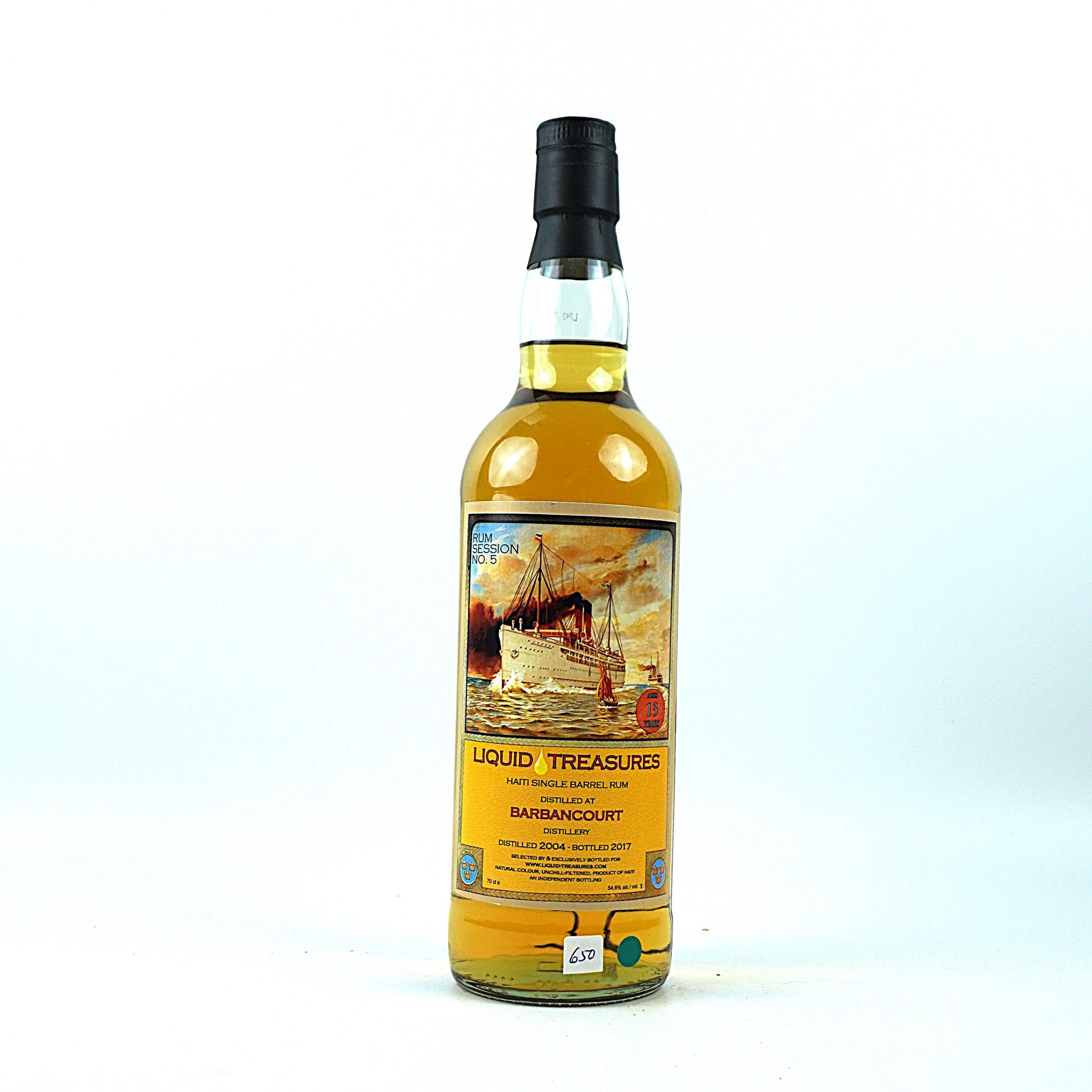 Der Liquid Treasures Session No. 5 – Barbancourt 2004, 13 Jahre ist eine exklusive Abfüllung des unabhängigen Abfüllers Liquid Treasures. Dieser Rum wurde 2004 in der renommierten Barbancourt-Destillerie in Haiti aus Zuckerrohrhonig destilliert und reifte 13 Jahre lang in einem Eichenfass. Mit einem Alkoholgehalt von 54,6 % vol. bietet er ein intensives Geschmackserlebnis.